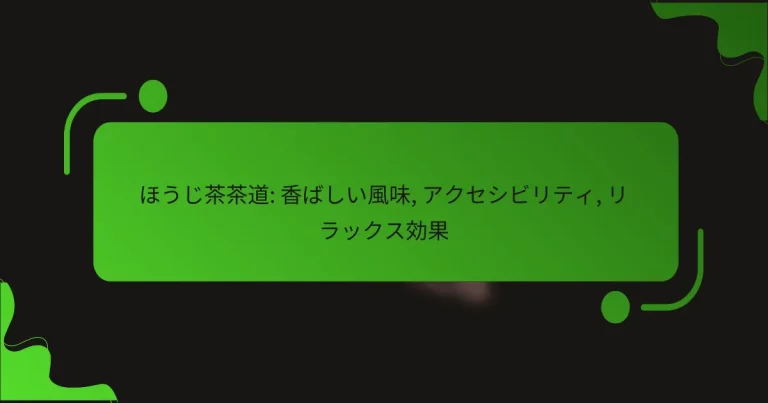 ほうじ茶茶道は、香ばしい風味を持つほうじ茶を用いた日本の伝統的な茶道の一形態で、リラックス効果を重視した儀式的なプロセスを提供します。適切な淹れ方や茶器、環境設定を通じて、より深い味わいと心の安らぎを体験することができます。 ほうじ茶茶道とは何か? ほうじ茶茶道は、香ばしい風味を持つほうじ茶を用いた日本の伝統的な茶道の一形態です。この茶道は、リラックス効果を重視し、茶を楽しむための儀式的なプロセスを提供します。 ほうじ茶の定義と特徴 ほうじ茶は、緑茶の一種で、焙煎された茶葉から作られます。焙煎によって独特の香ばしさが引き出され、カフェイン含有量が低くなるため、飲みやすいのが特徴です。 色は赤褐色で、香りは豊かで、味わいはまろやかです。ほうじ茶は、温かくても冷たくても楽しむことができ、食事との相性も良いです。 茶道におけるほうじ茶の役割 茶道において、ほうじ茶はリラックスした雰囲気を作り出す役割を果たします。特に、カジュアルな集まりや家庭での茶会でよく用いられます。 ほうじ茶を用いることで、参加者はリラックスし、会話を楽しむことができるため、社交的な場に適しています。 香ばしい風味の由来 ほうじ茶の香ばしい風味は、茶葉を焙煎する過程で生まれます。焙煎によって、茶葉の成分が変化し、独特の香りと味わいが引き出されます。 この香ばしさは、ほうじ茶を他の茶と区別する重要な要素であり、飲む人に心地よい感覚を提供します。 ほうじ茶の歴史と文化的背景 ほうじ茶は、江戸時代に日本で普及し始めました。元々は、余った茶葉を再利用するために焙煎されたことが起源とされています。 その後、ほうじ茶は庶民の間で人気を博し、現在では日本全国で愛されています。茶道の中でも、ほうじ茶は特に親しみやすい存在です。 ほうじ茶と他の茶の違い ほうじ茶は、緑茶やウーロン茶と異なり、焙煎されているため、香ばしさとまろやかさが際立っています。緑茶は新鮮な草のような香りが特徴ですが、ほうじ茶はその逆の風味を持ちます。 また、ほうじ茶はカフェインが少ないため、夜間でも安心して飲むことができ、リラックス効果が期待できます。 ほうじ茶茶道の香ばしい風味はどのように楽しむか? ほうじ茶の香ばしい風味を楽しむには、適切な淹れ方や茶器、環境設定が重要です。これらの要素を組み合わせることで、より深い味わいとリラックス効果を得ることができます。 香ばしさを引き出す淹れ方 ほうじ茶の香ばしさを引き出すためには、温度と時間が鍵です。お湯の温度は約90度から95度が理想で、抽出時間は1分から2分程度が適しています。 茶葉の量は、1杯あたり約2グラムから3グラムを目安にすると良いでしょう。これにより、香ばしさがしっかりと引き出されます。 香ばしい風味を感じるための茶器選び 茶器の選び方も香ばしい風味を楽しむ上で重要です。陶器や磁器の茶器は、熱を均一に伝え、香りを引き立てます。 特に、広口の急須を使用すると、香りが逃げにくく、より豊かな風味を感じることができます。 ほうじ茶の香りを楽しむための環境設定 ほうじ茶を楽しむ環境も香りを引き立てる要素です。静かな場所で、リラックスできる空間を整えることが大切です。 また、香りを感じやすくするために、照明を柔らかくし、心地よい音楽を流すと良いでしょう。これにより、ほうじ茶の香ばしさを最大限に楽しむことができます。 ほうじ茶茶道はどのようにリラックス効果をもたらすか? ほうじ茶茶道は、香ばしい風味と儀式的なプロセスを通じてリラックス効果をもたらします。茶道の静かな環境と、ほうじ茶の成分が心身を落ち着かせる要因となっています。 リラックス効果の科学的根拠 リラックス効果の科学的根拠は、ほうじ茶に含まれる成分にあります。特に、テアニンというアミノ酸は、脳内のリラックスを促進する神経伝達物質の生成を助けます。このため、ほうじ茶を飲むことでストレスが軽減されることが研究で示されています。 また、香り成分であるカフェインの低い含有量も、リラックスを促進する要素です。カフェインの影響を受けにくいことで、心が穏やかになりやすいのです。 ほうじ茶の成分とその効果 ....