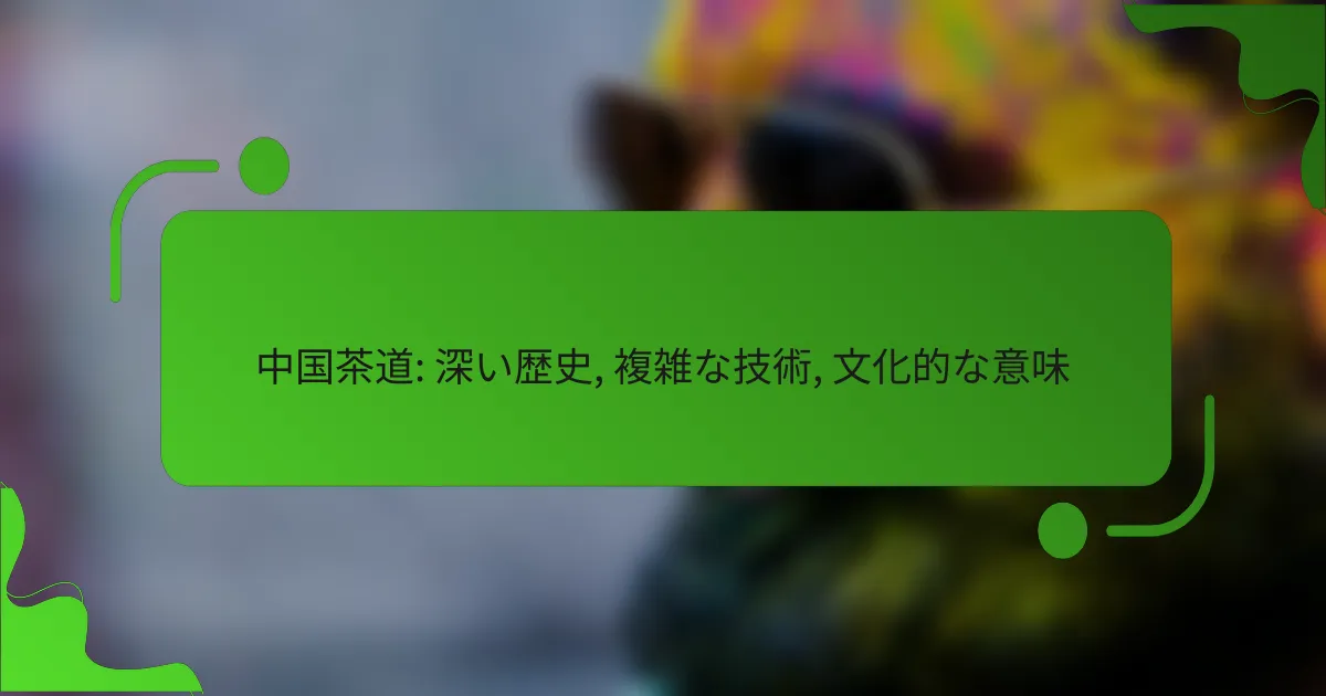 中国茶道は、中国の伝統的な茶の淹れ方や楽しみ方を指します。この文化は、茶の選び方、淹れ方、飲み方に深い意味を持ち、精神的な体験としても重要です。