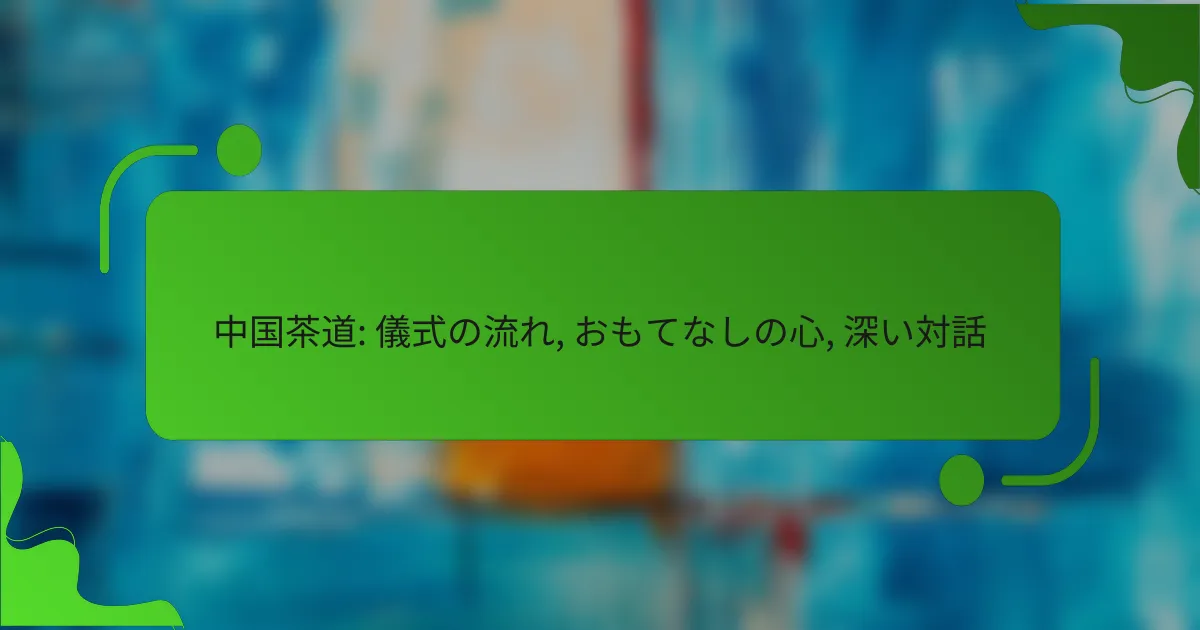 中国茶道は、茶を淹れる技術とその背後にある文化的な価値観を重視した儀式であり、おもてなしの心や深い対話を通じて参加者同士の絆を深めることを目的としています。儀式は、準備から茶の選定、淹れ方、提供、片付けまでの一連の流れを含み、各段階が重要な意味を持っています。