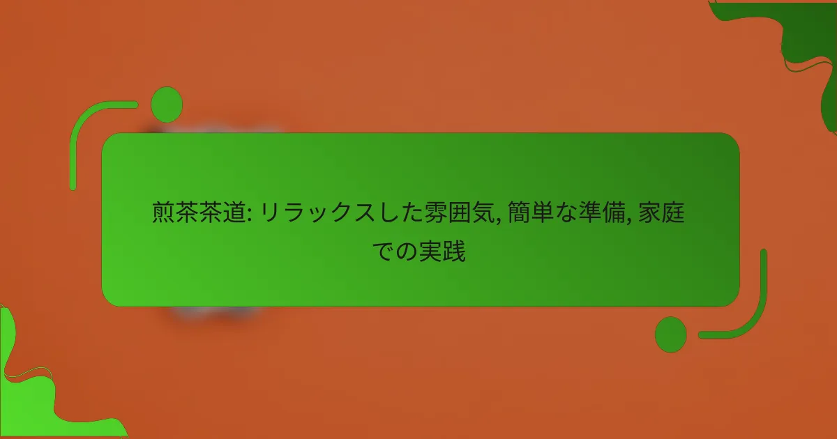 煎茶茶道を家庭で実践するには、必要な道具を揃え、簡単な準備を行い、リラックスした雰囲気を整えることが重要です。これにより、煎茶を楽しむ時間がより充実したものになります。