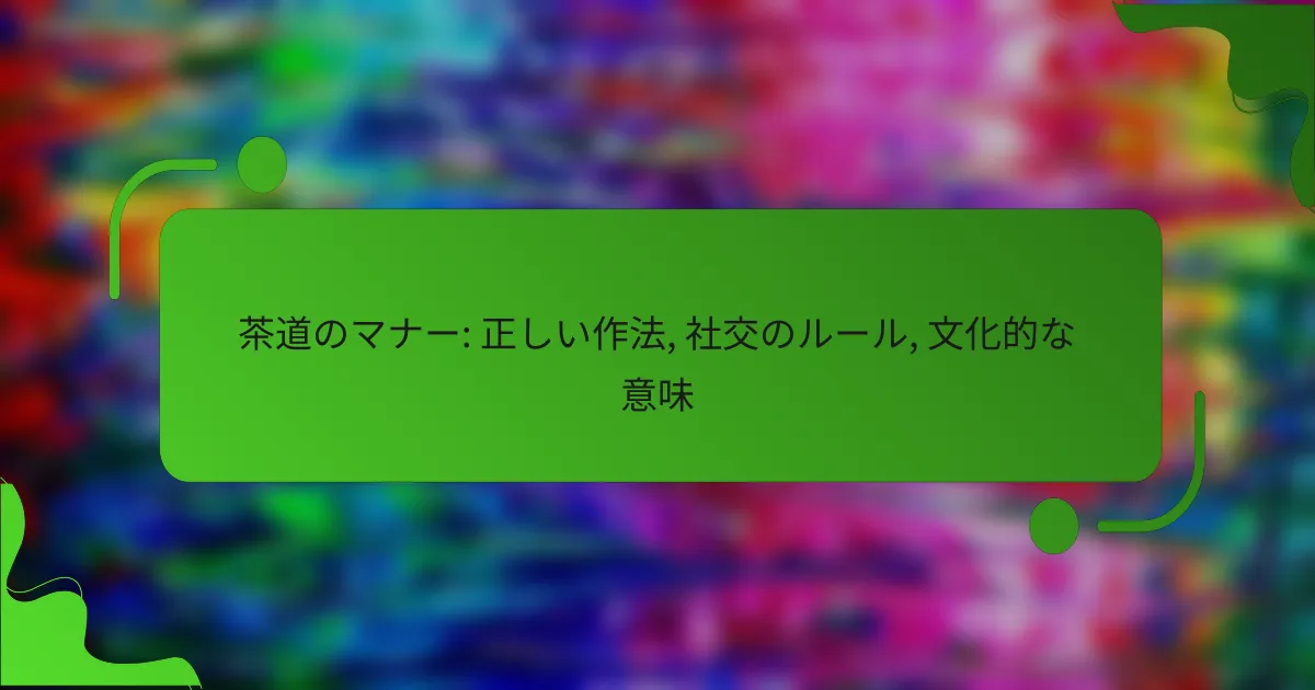 茶道のマナー: 正しい作法, 社交のルール, 文化的な意味