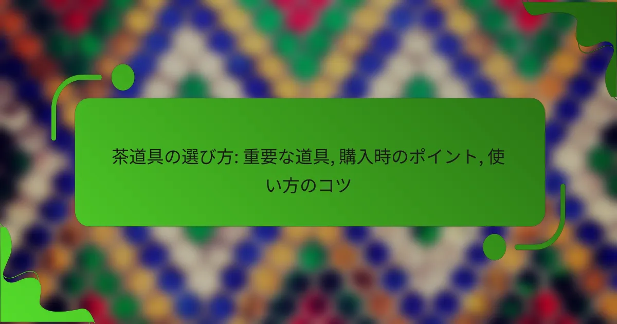 茶道具の選び方: 重要な道具, 購入時のポイント, 使い方のコツ