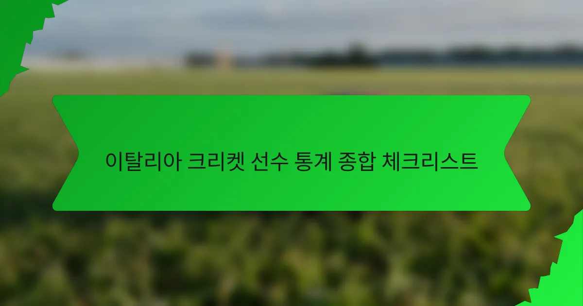 이 포괄적인 이탈리아 크리켓 선수 통계 체크리스트는 타격 및 볼링 평균, 경기 출전 수, 필드 기록 등 주요 성과 지표를 강조합니다. 이 스포츠가 이탈리아에서 계속 발전함에 따라, 이러한 통계는 선수들의 기여와 더 확립된 크리켓 국가들과 비교했을 때 그들이 직면한 도전에 대한 귀중한 통찰을 제공합니다. 역사적 추세는 또한 이탈리아에서의 크리켓 성장과 발전을 보여주며, 이는 참여 증가와 국제적 노출에 의해 형성되었습니다.