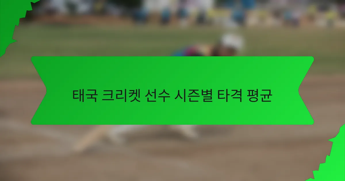 태국 크리켓 선수들의 타격 평균은 시즌에 따라 크게 달라지며, 개인 및 팀 성과의 추세를 반영합니다. 이 평균은 총 득점 수를 선수의 아웃된 횟수로 나누어 계산되며, 시간이 지남에 따라 선수들의 일관성과 효과성에 대한 통찰을 제공합니다.